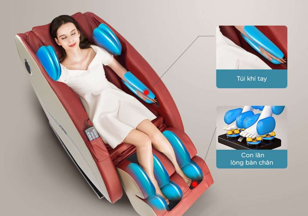 Mọi tác động massage từ cổ đến đùi đều có tác động theo con lăn, con lăn của ghế matxa chạy dọc theo cơ thể theo hình chữ L. Được cấu tạo êm ái và an toàn với người sử dụng, các động tác massage đấm, vỗ, nhay, ấn….từ con lăn chắc chắn sẽ xua tan mọi mệt mỏi của bạn. Do tia hồng ngoại có tác dụng thấu nhiệt nông xuyên qua da khoảng 3mm, nên tia sáng này làm nóng da tại chỗ, nhiệt độ da tăng lên, mạch máu tại chỗ giãn ra.