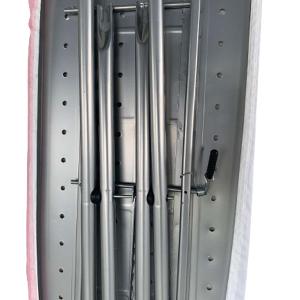 Bàn ủi quần áo xếp gọn Ohi@ma HM-18326 không chiếm quá nhiều diện tích sử dụng, vì sau khi sử dụng xong chúng ta có thể xếp gọn sản phẩm và cho vào 1 góc nào đồ trong phòng, khi cần sử dụng lại chúng ta chỉ cần mang ra và mở sản lên và sử dụng. Điểm nhấn của sản phẩm nằm ở ngay phần kê bàn ủi hay còn gọi là bàn chờ, đây là nơi cực kỳ quan trọng của sản phẩm vì hầu như hơn 70% thời gian chiếc bàn ủi sẽ nằm trên nó, chính vì điều đó nhà sản xuất cũng để tích hợp thêm 2 tấm cao su chịu nhiệt giúp cố định bàn ủi trong thời gian chờ được cố định tại vì trí.