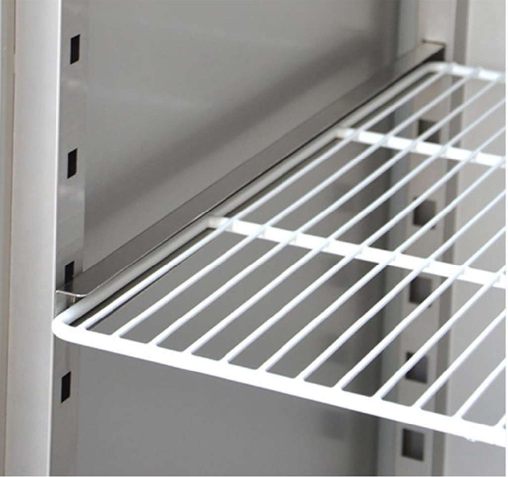 Bàn mát 70cm Hoshizaki RTW-70LS4 được cấu tạo từ chất liệu thép 304 cao cấp bền đẹp, sang trọng, chống gỉ và ăn mòn của thời tiết. Đặc biệt là những nơi có độ ẩm nhiều như góc bếp, do kích thước bàn mát vô cùng nhỏ gọn, gồm 1 cửa và 1 giá để thực phẩm bên trong, đồng thơi chân đứng vững chắc có thể tăng giảm độ cao tùy ý. Bàn thớt Hoshizaki RTW-70LS4 sử dụng công nghệ làm lạnh trực tiếp giúp làm lạnh nhanh và hiệu quả, sử dụng máy nén cao cấp hiệu suất cao, vận hành êm ái không gây tiếng ồn và có tuổi thọ cao, nhiệt độ bên trong tủ được phân bố đồng đều đến khắp các góc, phạm vi nhiệt độ từ -2 ~ 12 độ C thích hợp bảo quản các loại thực phẩm như: thịt cá, rau củ quả, trái cây, nước đóng chai, …