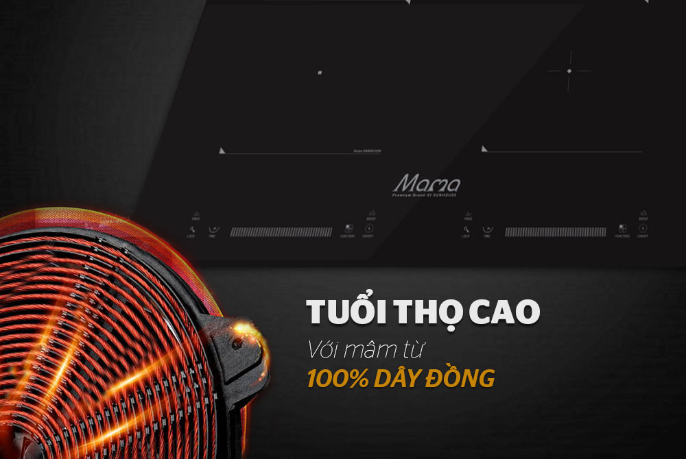 - Mâm nhiệt siêu bền với 100% dây đồng đem lại tuổi thọ cao