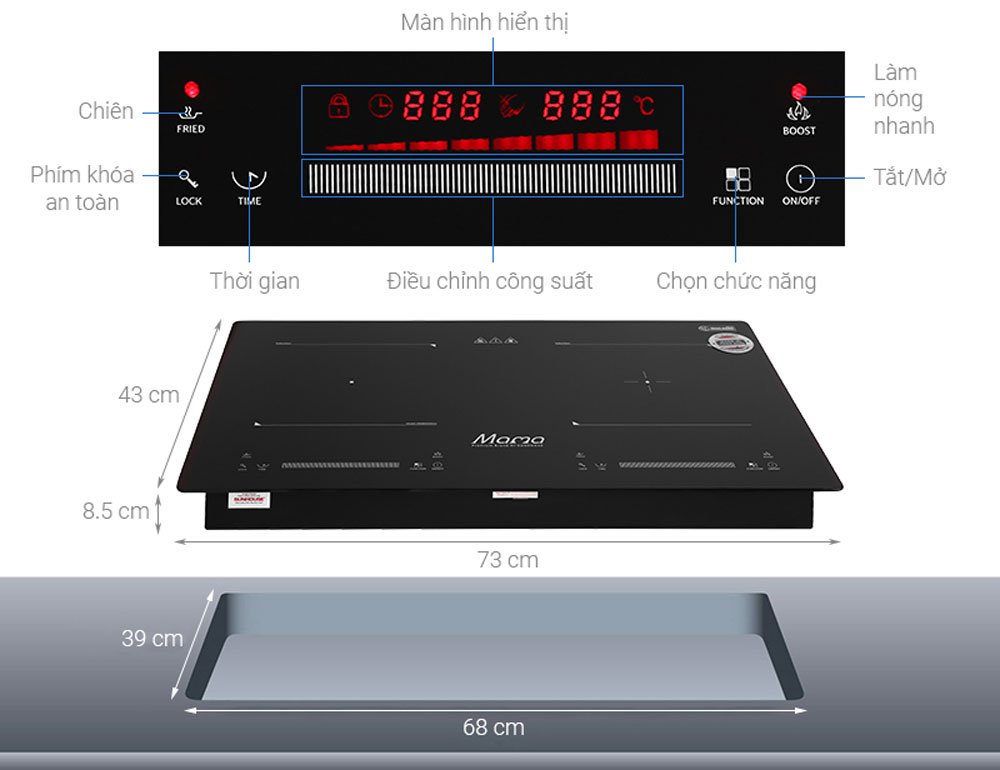 - Bếp từ đôi có khóa phím an toàn tuyệt đối với trẻ em