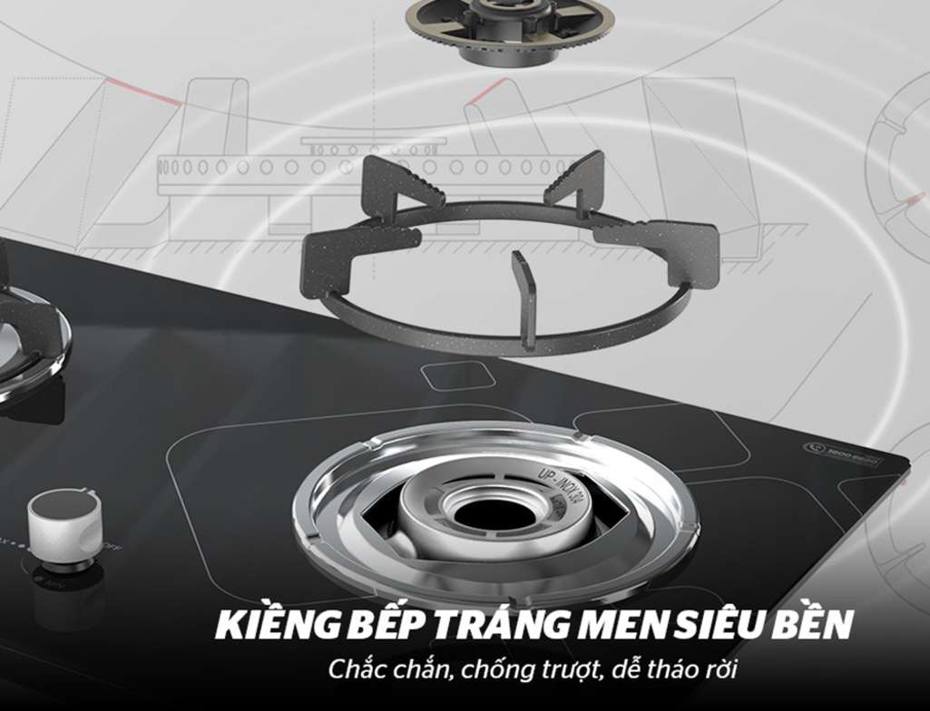 Bếp gas âm Sunhouse SHB5515-SG được trang bị những linh kiện cao cấp có độ bền cao, trong đó bề mặt bếp bằng kính cường lực có độ chịu nhiệt cao không bị nứt vỡ khi đặt đồ năng hoặc nóng lên trên. Họng dẫn gas của bếp được làm bằng hợp kim nhôm phủ đồng không bị gỉ sét trong suốt quá trình sử dụng. Mâm chia lửa cao cấp, kiềng bếp gas được làm bằng gang đúc, núm hợp kim siêu bền và chắc chắn không bị mài mòn theo thời gian.