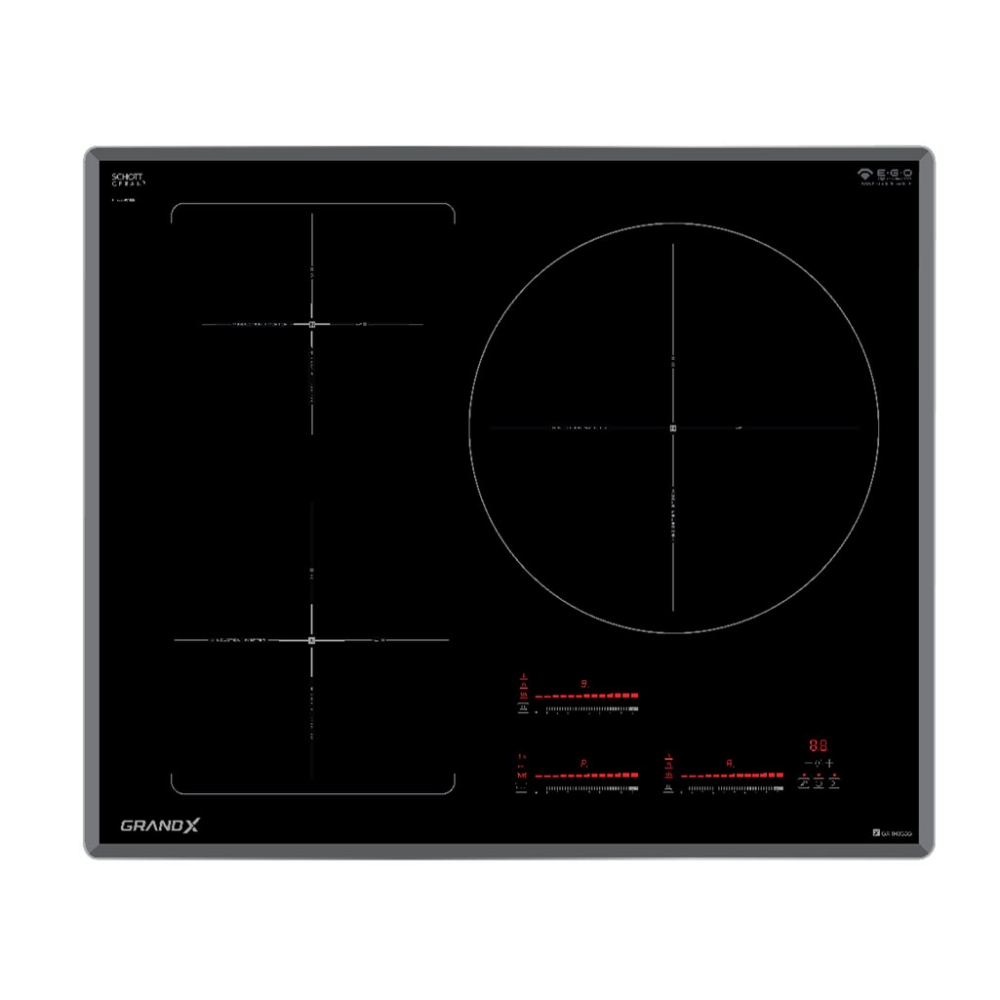 - Bếp từ âm GrandX GX-IH933G sử dụng mặt kính Schott Ceran cao cấp. Bề mặt kính có độ cứng cao, khả năng chịu sốc nhiệt tốt, giúp an tâm nấu nướng liên tục ở nhiệt độ cao mà không lo nứt vỡ.
