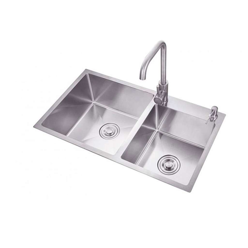 - Kiểu dáng hai hố lệch được làm bằng inox
