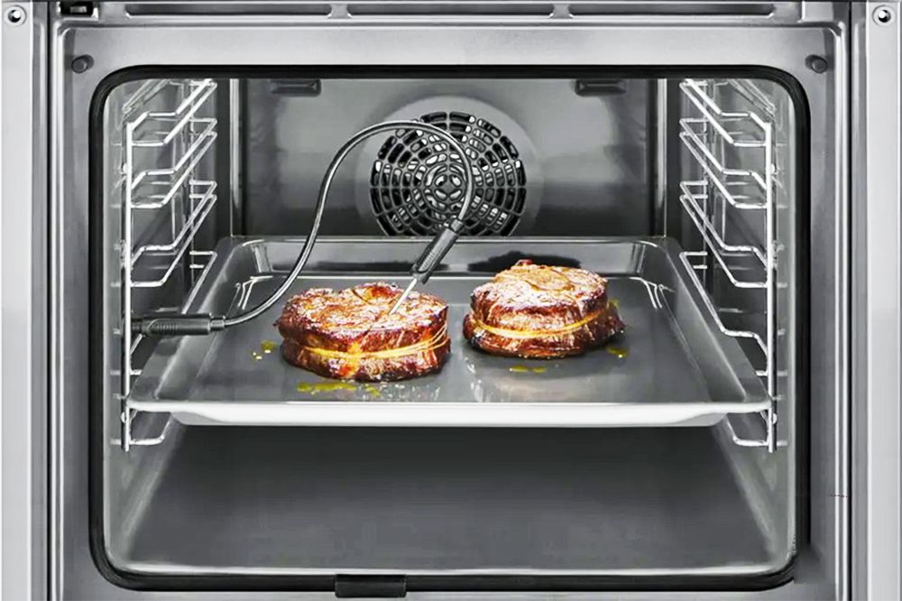 Bạn là người yêu thích món thịt bò nướng, vừa, tái hay chín thì với lò nướng Bosch các món thịt luôn quay đến điểm mong muốn vì một cảm biến bên trong lò nướng thịt liên tục đo nhiệt độ ở lõi của miếng thịt. Vì lò nướng thịt được kết nối với lò nướng, không cần điều chỉnh thủ công và tương tác với lò nướng. Lò phát tín hiệu âm thanh và tự động tắt ngay khi đạt đến nhiệt độ lõi mong muốn. Điều này dẫn đến một món thịt được nấu chín hoàn hảo mà không gặp rắc rối.