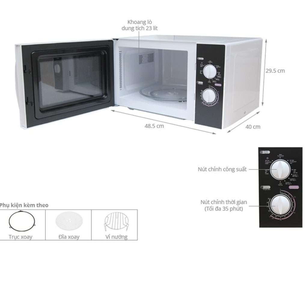 - Có 5 mức công suất vi sóng