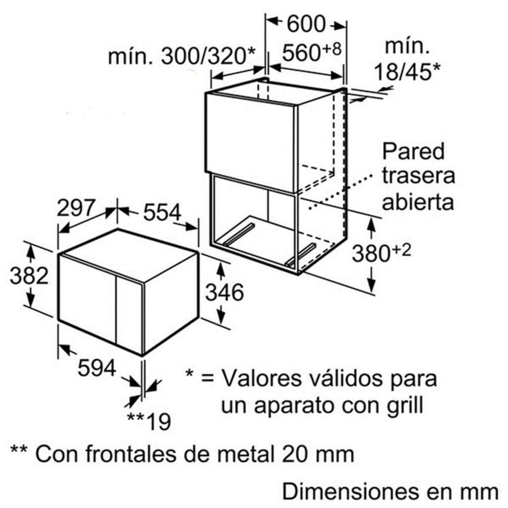 - Kích thước lò 82 x 594 x 317 mm