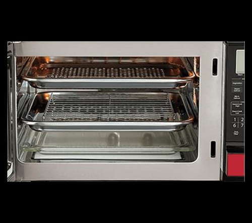 Hơi nước phân bổ đều bên trong lò nên có thể nấu bằng 2 khay cùng 1 lúc mà không hề gây lẫn lộn mùi vị. Bữa ngon cho gia đình nhỏ 4 người xong trong tích tắc.