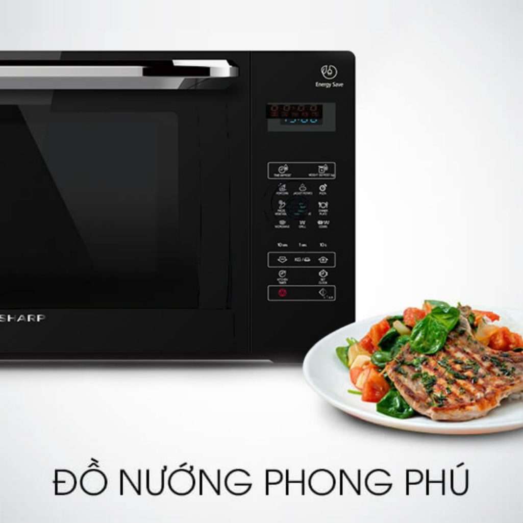 Lò vi sóng Sharp R-G274VN-S có 4 chức năng chính là nấu, hâm nóng, rã đông, rã đông theo thời gian, rã đông theo trọng lượng, nướng, công suất vi sóng 800 W, công suất nướng đối lưu lớn đến 1000 W giúp chế biến món ăn thuận tiện, tiết kiệm thời gian, điện năng hiệu quả. Chức năng nướng kết hợp giúp thức ăn chín đều, vàng giòn, thơm ngon. Chế độ hẹn giờ linh hoạt với thời gian hẹn tối đa lên đến 35 phút, sau khi hết thời gian hẹn, lò sẽ có chuông báo giúp người dùng yên tâm khi nấu nướng, không sợ món ăn bị cháy khét.