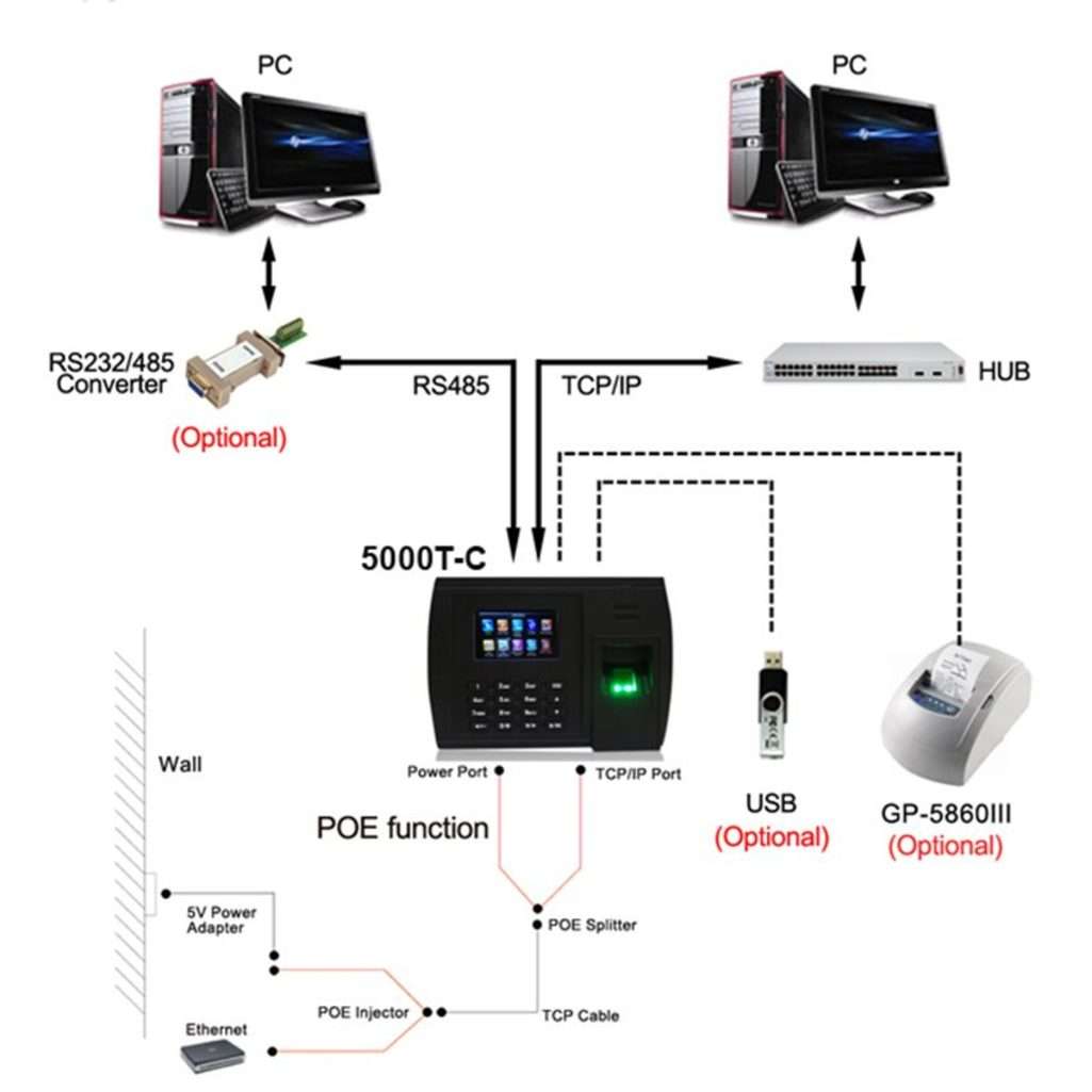 | Kết nối với máy tính qua | Cổng RS – 232/485, TCP/IP + Wifi |