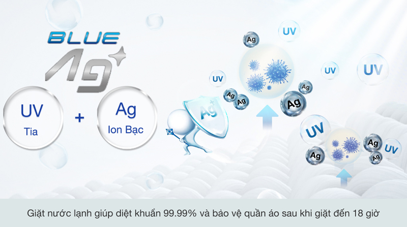 - Công nghệ Blue Ag+ giúp loại bỏ đến 99,99% vi khuẩn