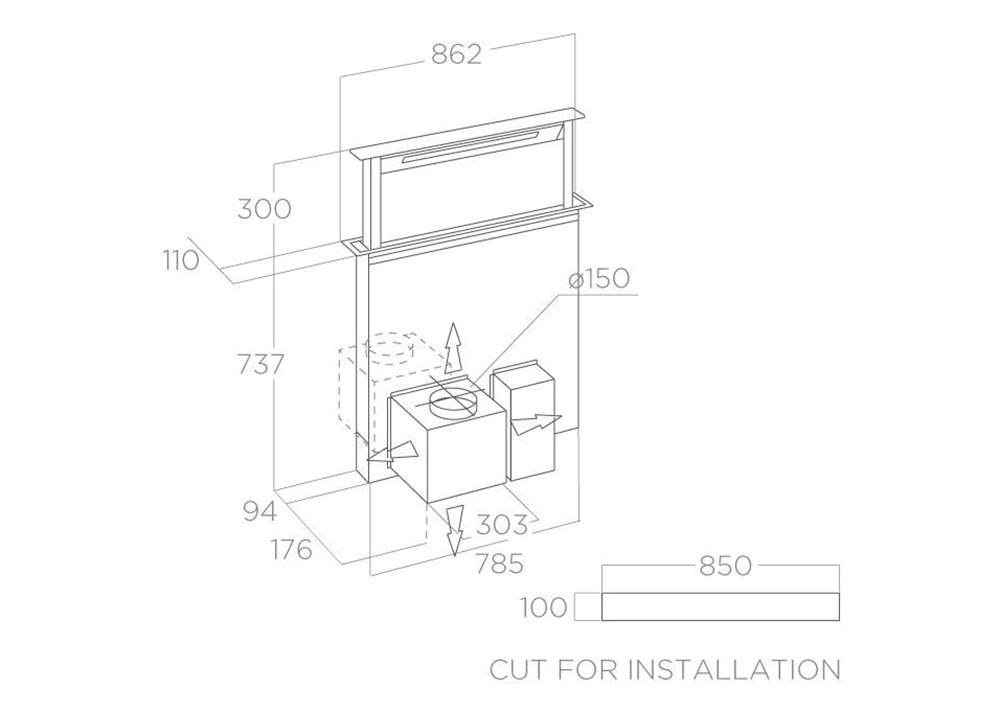 Máy hút mùi âm bàn Elica GETUP NAKED/A/90 mang phong cách thiết kế phóng khoáng với hiệu quả tương tác tối đa. Máy hút mùi âm bàn GET UP đảm bảo không gian rộng rãi thoáng đãng hơn. Lực hút mạnh mẽ vận hành êm ái. Thiết kế liền mạch, nằm gọn với mặt bàn khi chưa khởi động hút.
