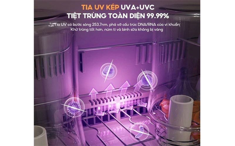 - Tia UV kép tiệt trùng 99,99%