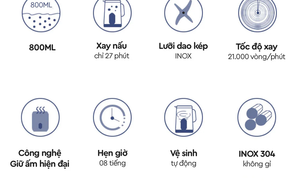 - Tính năng lựa chọn được tốc độ xay nấu thông minh tiện lợi