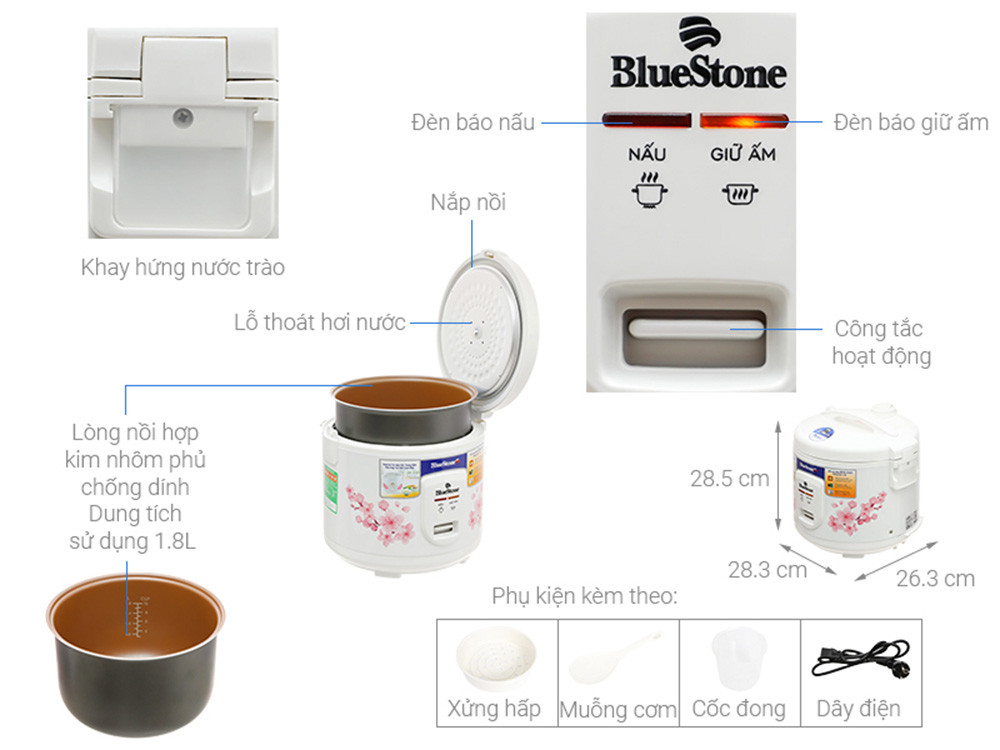 Nồi cơm nắp gài Bluestone 1.8 lít RCB-5525 - Hàng chính hãng