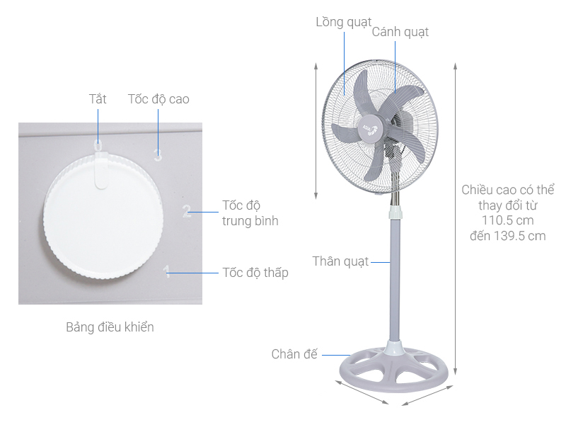 - Tốc độ gió: 3 mức