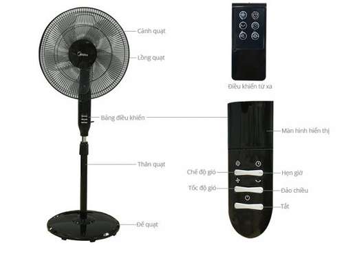 - Tiện ích: Điều khiển từ xa, Điều chỉnh được chiều cao, Hẹn giờ tắt