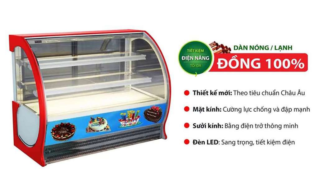 Đồng thời hệ thống đèn LED của tủ giúp khách hàng có thể quan sát các loại thực phẩm bên trong một cách dễ dàng hơn, dàn lạnh bằng đồng cũng giúp cải thiện lượng điện năng tiêu thụ và giữ thực phẩm được lâu hơn so với dàn nhôm, nếu bạn đang có nhu cầu kinh doanh tiệm bánh hãy lưu tâm về sản phẩm này nhé