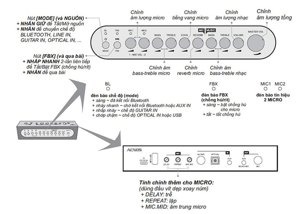 - Chức năng chống hú (feedback)